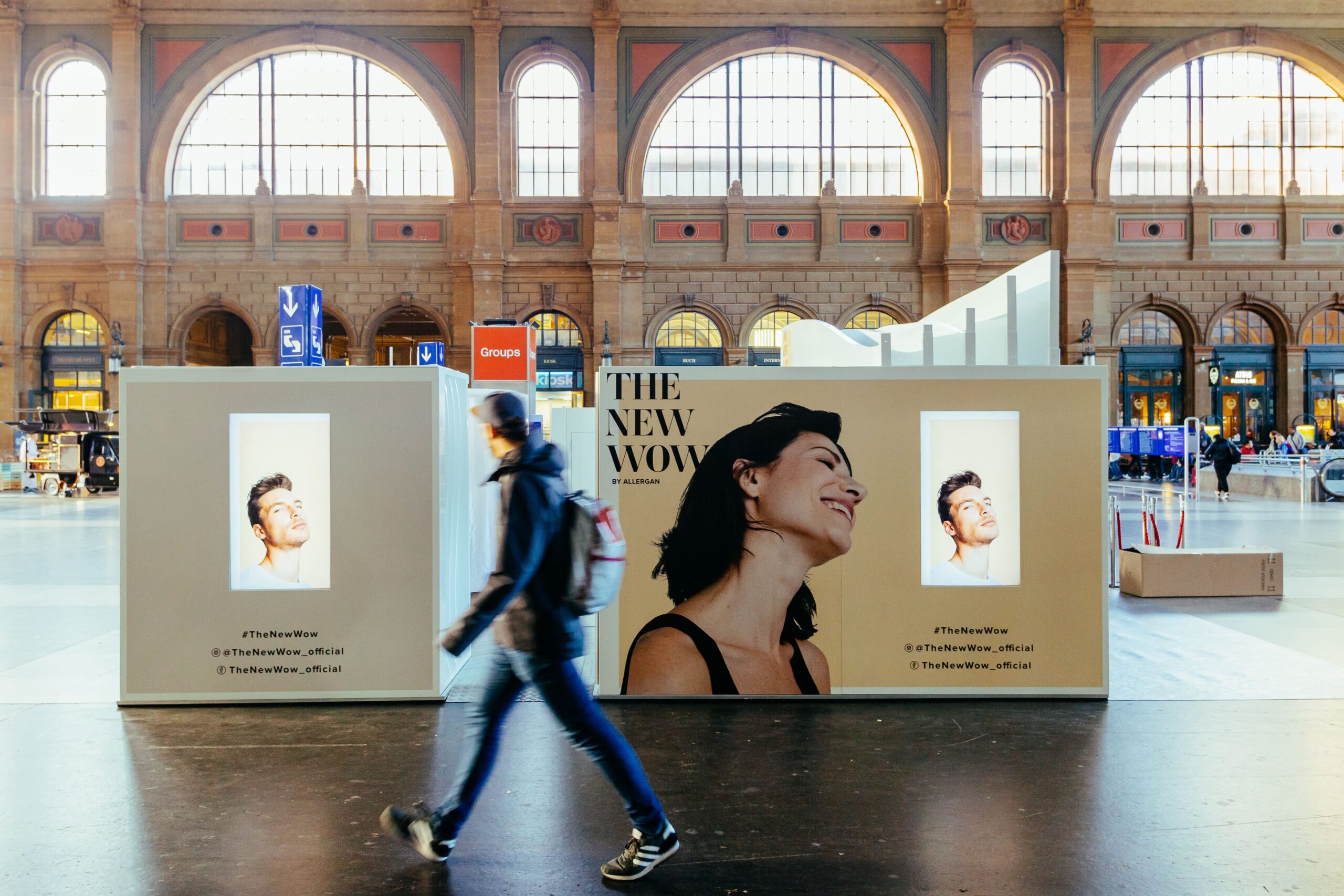 During Allergan’s treatment awareness campaign The New Wow, Brandsoul was responsible for designing a pop-up stand that was intended to provide education, awareness raising and visualisation for filler injections and cryolipolysis treatments. The stand was set up at the main railway stations in Zurich, Bern and Geneva.