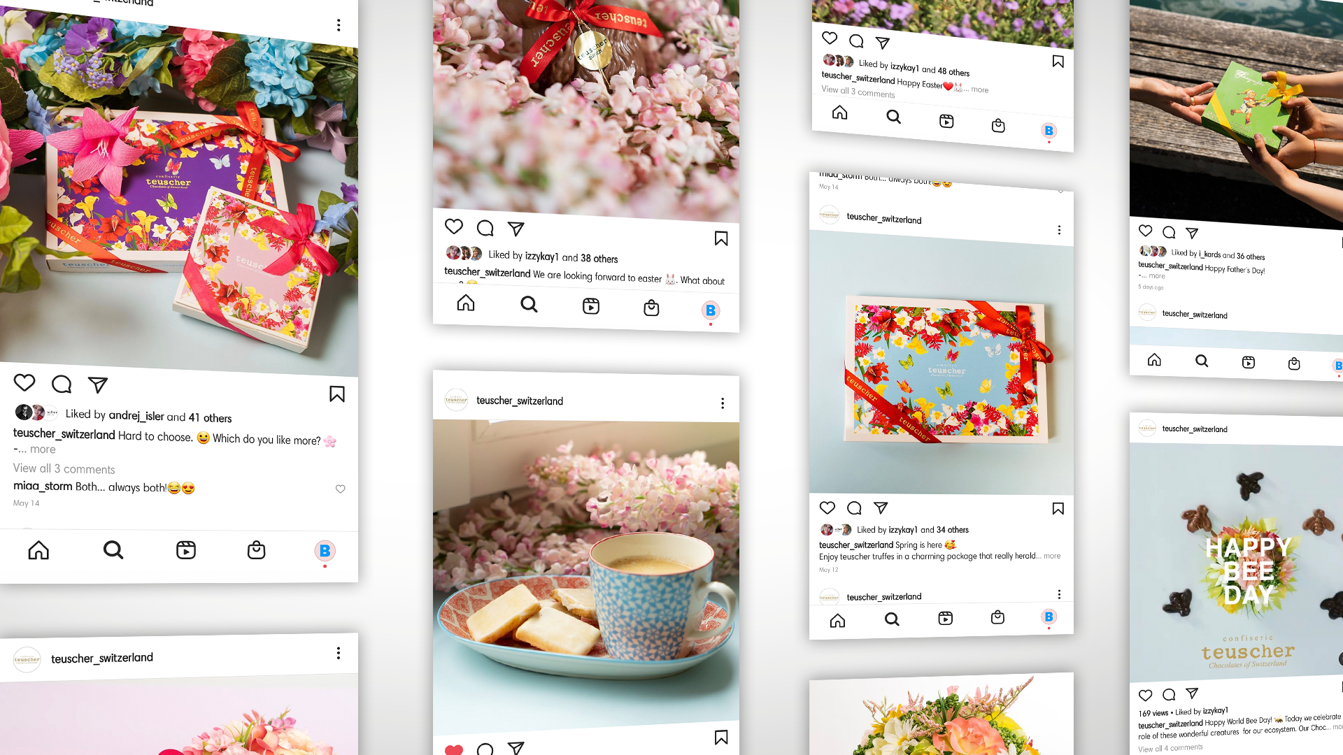 In order to better reach a more local and younger target group, Brandsoul has worked out a specific social media strategy for teuscher and is responsible for the management of their social media. Brandsoul is also taking over follower management as well as the complete content production and all accompanying measures like instore material, seasonal promotions, newsletter content etc. Thanks to the agency’s inhouse film- and photo-studio, last minute ideas and opportunities can be met in no time.